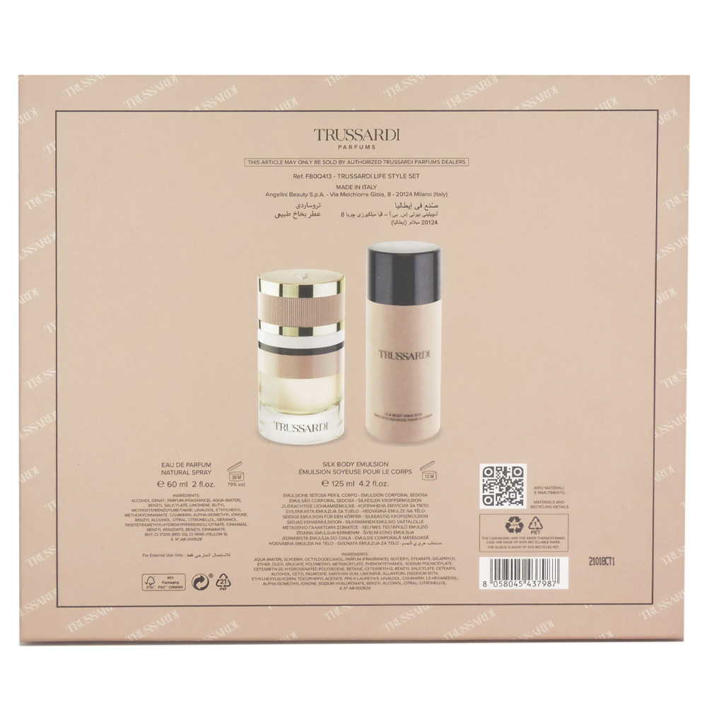 Trussardi Trussardi w set(edp 60 + silk body emulsion 125) — парфюмерный подарочный набор для женщин.